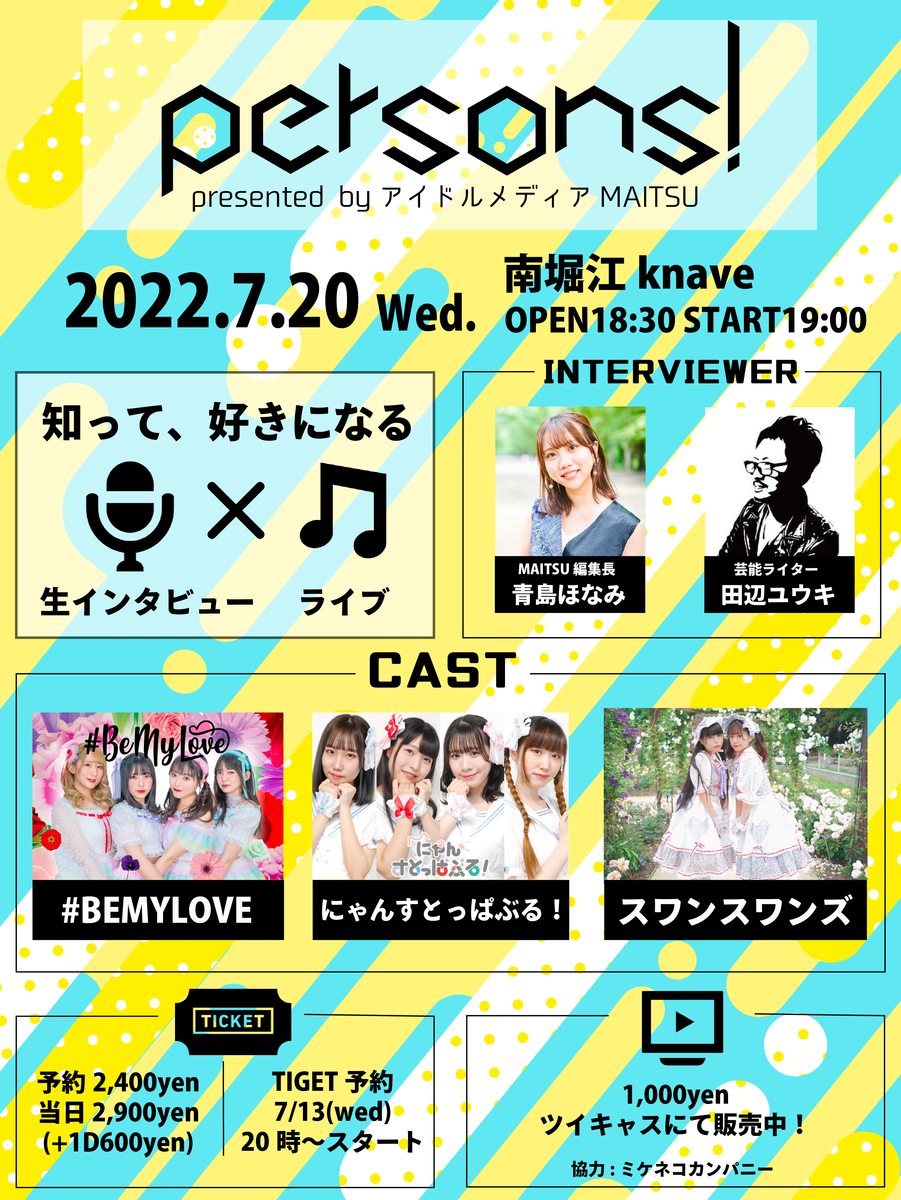 またアイドルメディア「MAITSU」やアイドルイベント「Persons!」を主宰している。